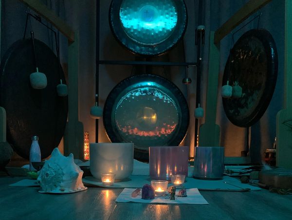 A unique, comfortable experience, centered around the healing power of sound, featuring several gongs and alchemy crystal singing bowls.
